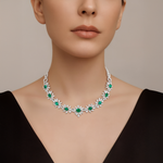 18K White Gold Emerald & Diamond Necklace