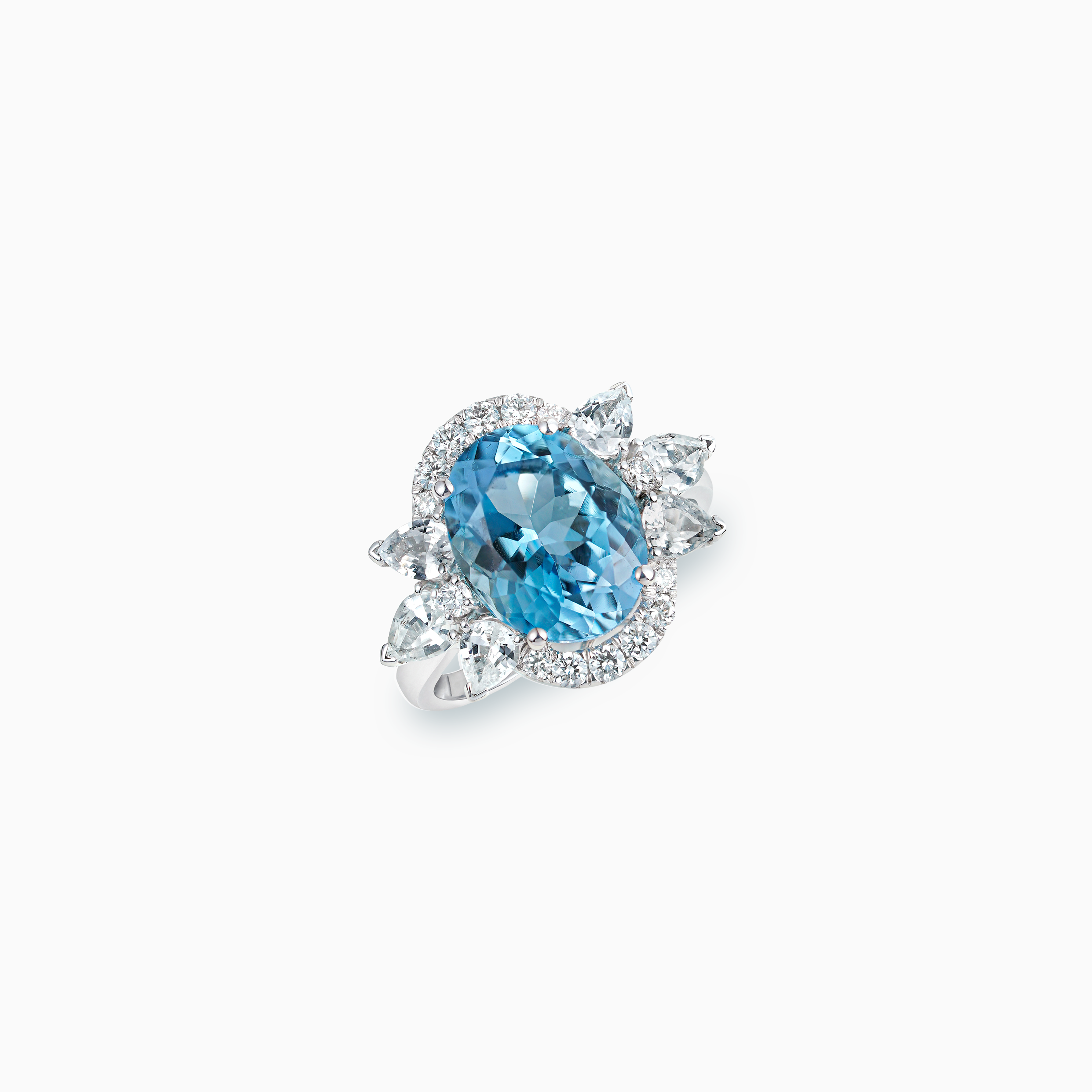 18K White Gold Aquamarine, Sapphire & Diamond Ring