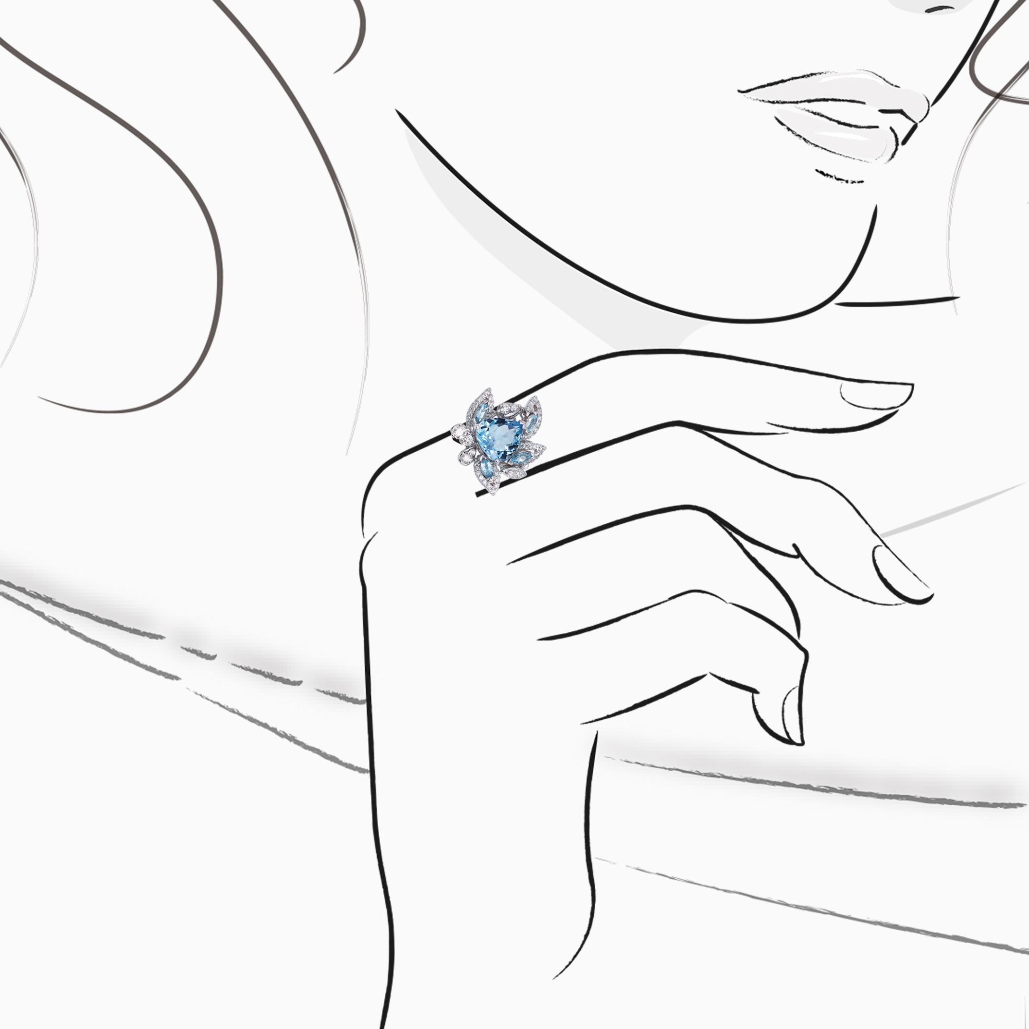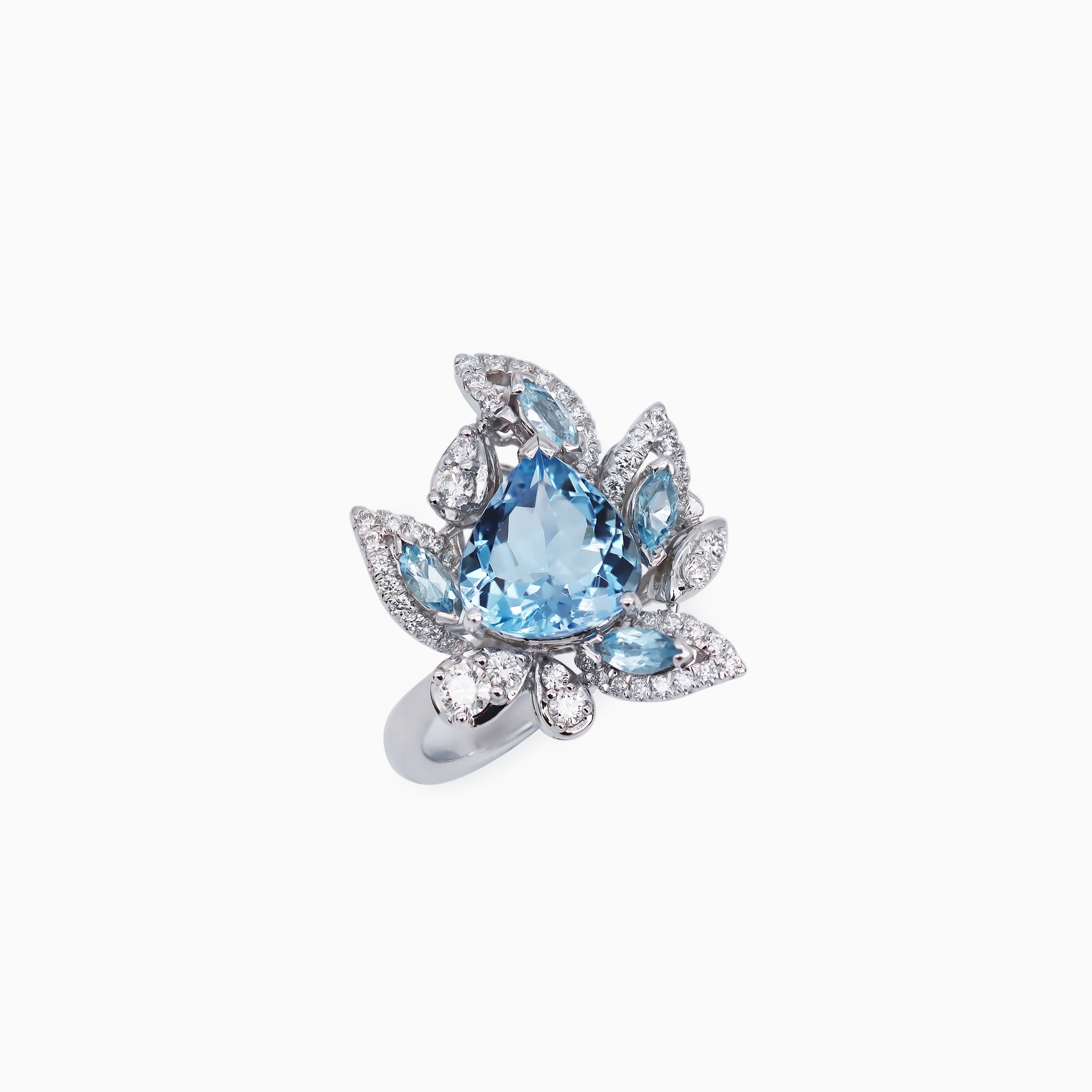 18K White Gold Aquamarine, Topaz & Diamond Ring