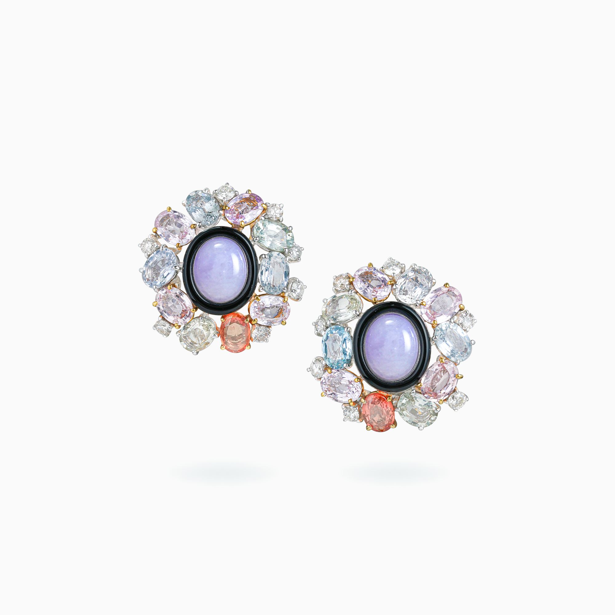 18K Gold Colored Sapphire Lavender Jade Earrings
