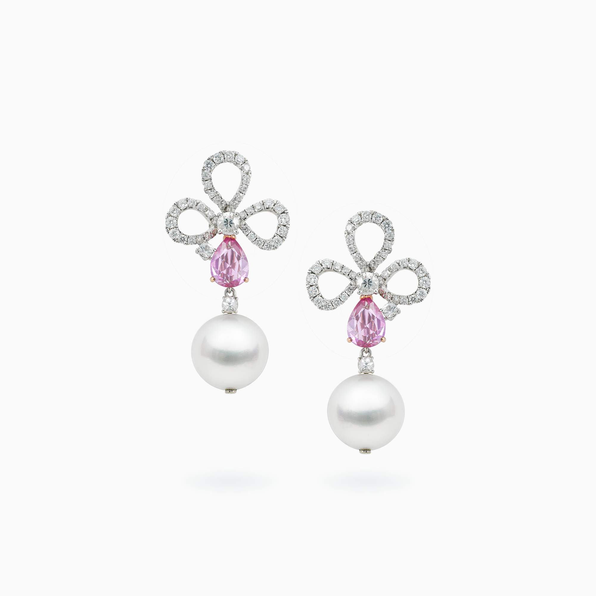18K White & Rose Gold South Sea Pearl Sapphire & Diamond Earrings