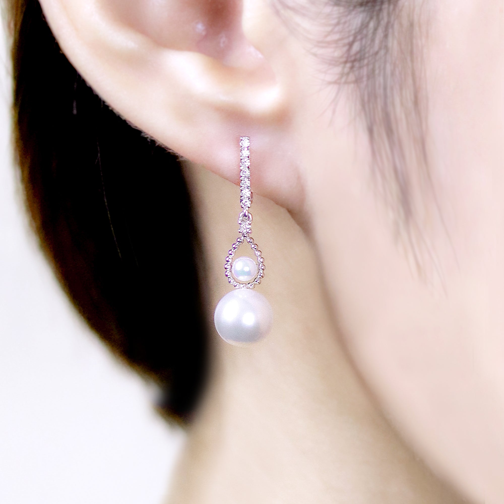 18K White Gold Akoya Pearl & Diamond Earrings