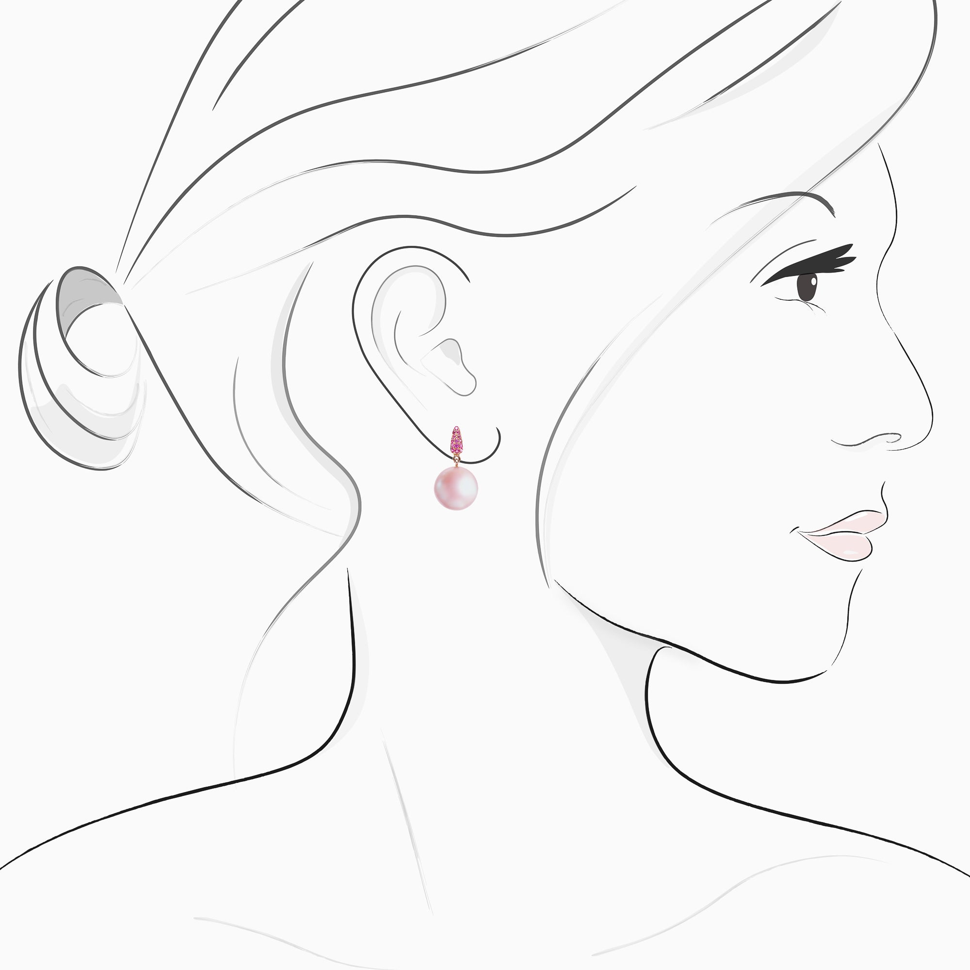 18K White & Rose Gold Fresh Water Pearl & Sapphire Earrings