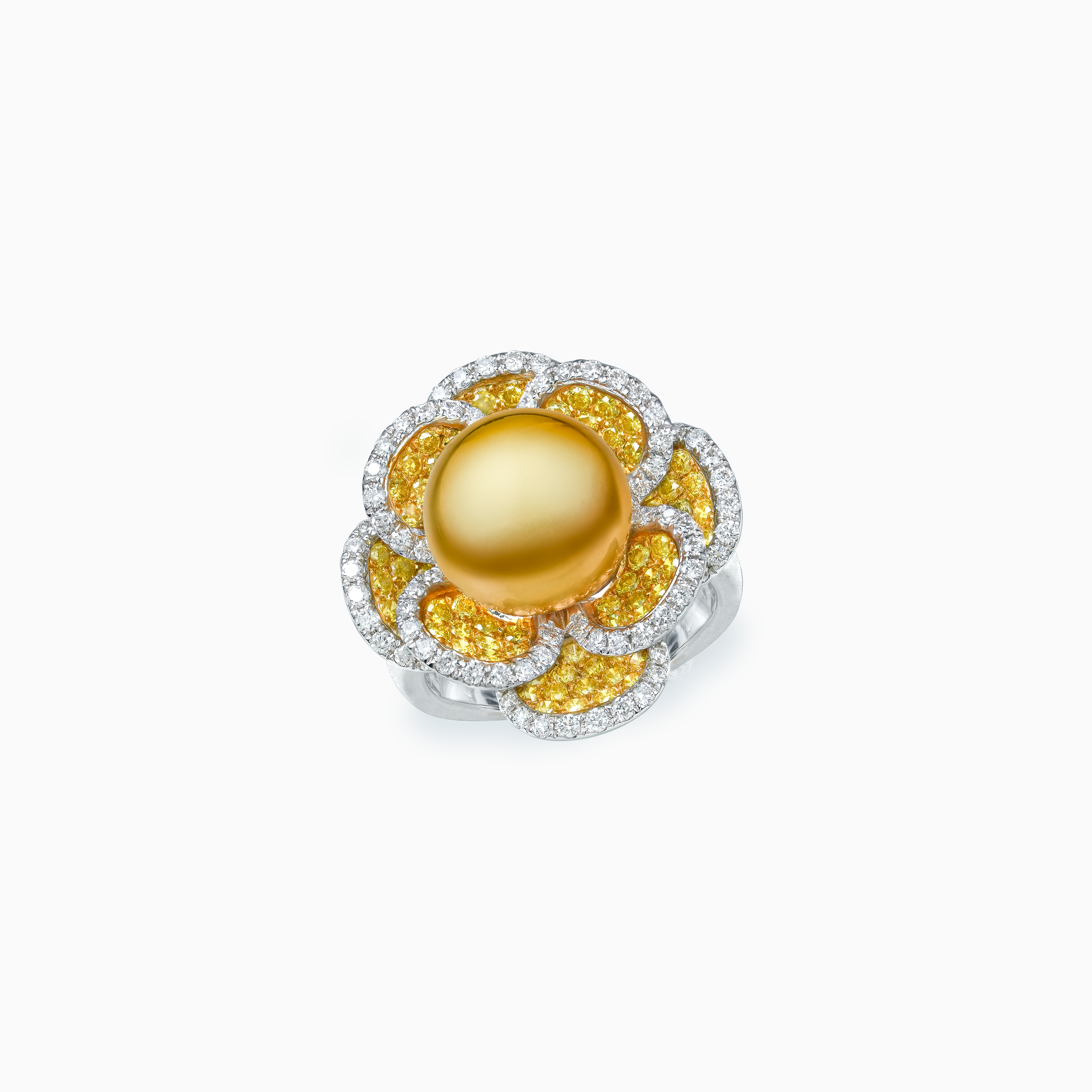 18K White & Yellow Gold South Sea Pearl, Diamond Ring