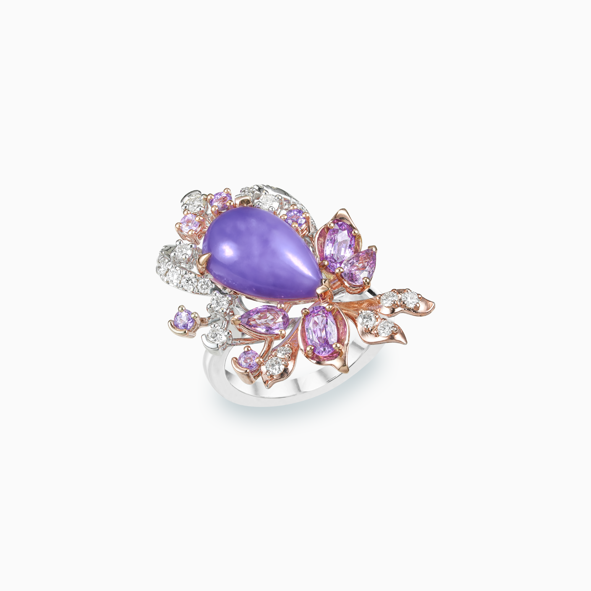 18K White & Rose Gold Lavender Jade & Diamond Ring