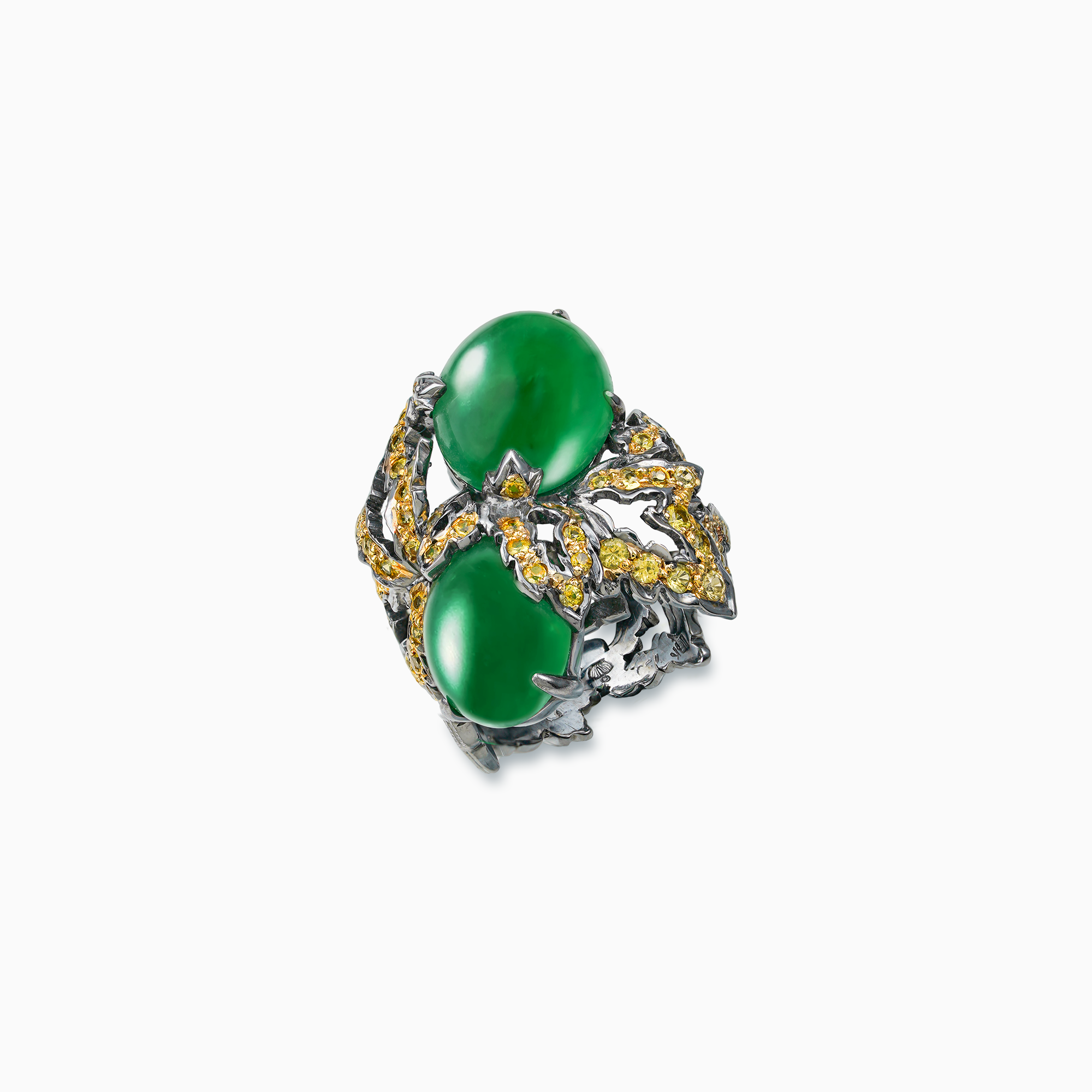 18K Yellow & Black Gold Green Jade & Diamond Ring
