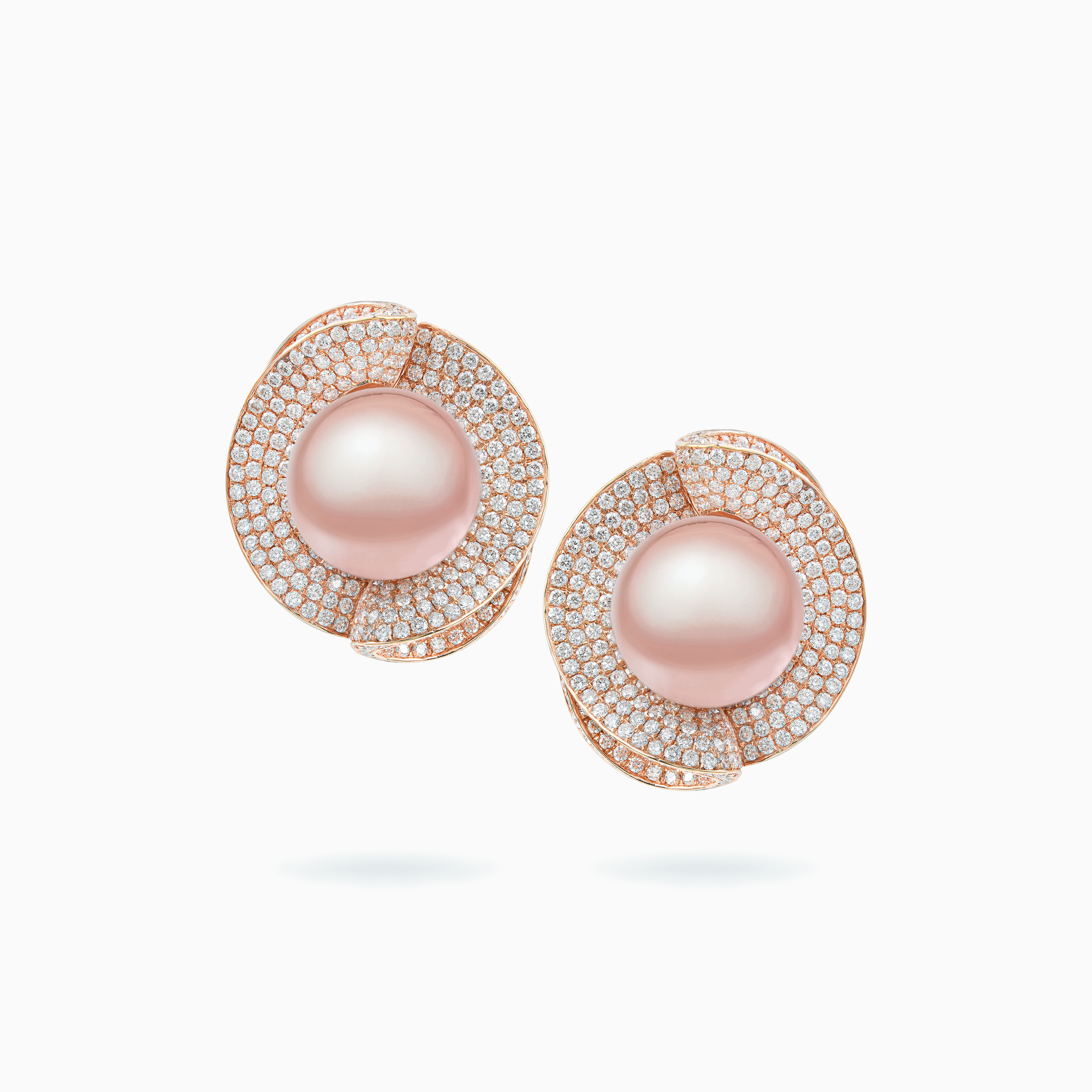 18K White & Rose Gold South Sea Pearl Diamond Earrings