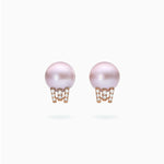18K Rose & White Gold Pink Fresh Water Pearl Diamond Earrings