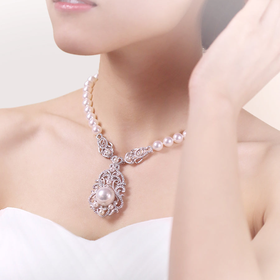 18K White Gold Akoya Pearl & White South Sea Pearl Necklace