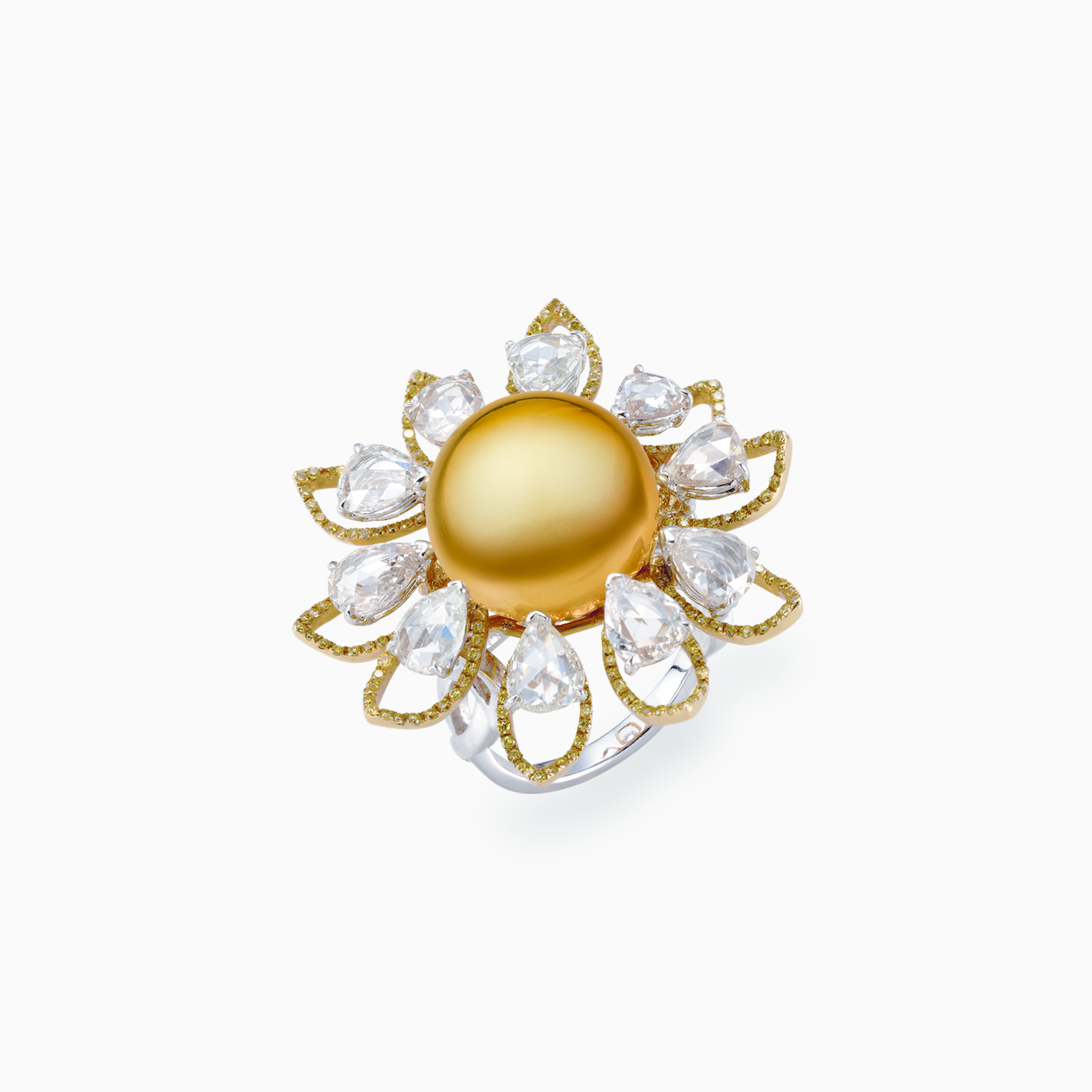 18K White & Yellow Gold Golden South Sea Pearl Ring