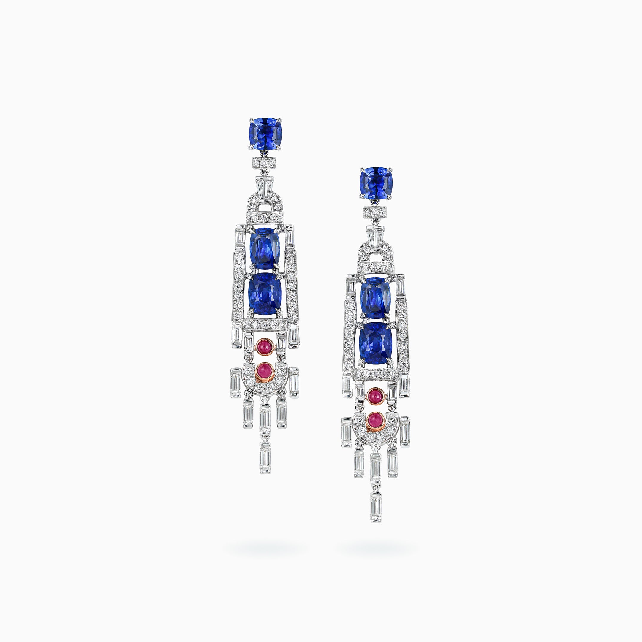 18K White & Rose Gold Sapphire, Ruby, Diamond Earrings