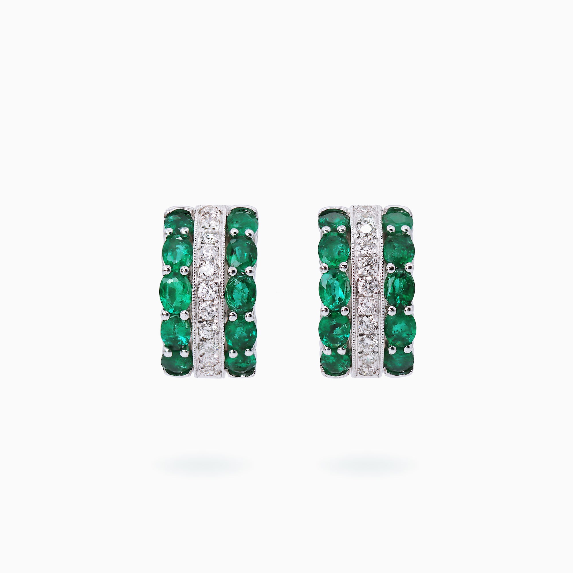 18K White Gold Emerald Diamond Earrings