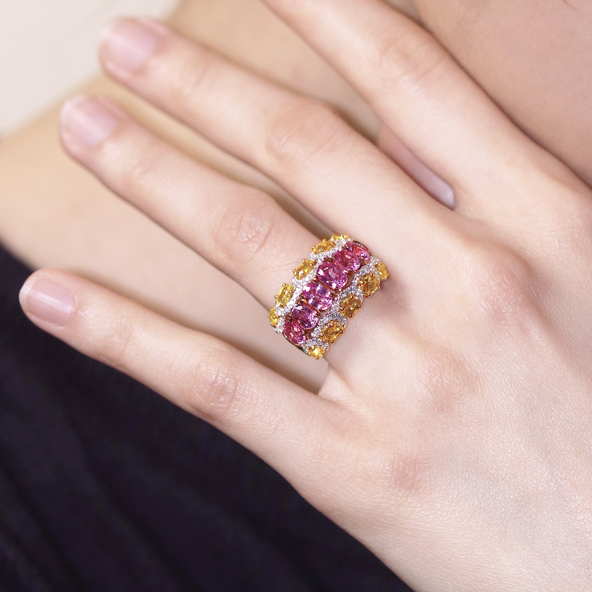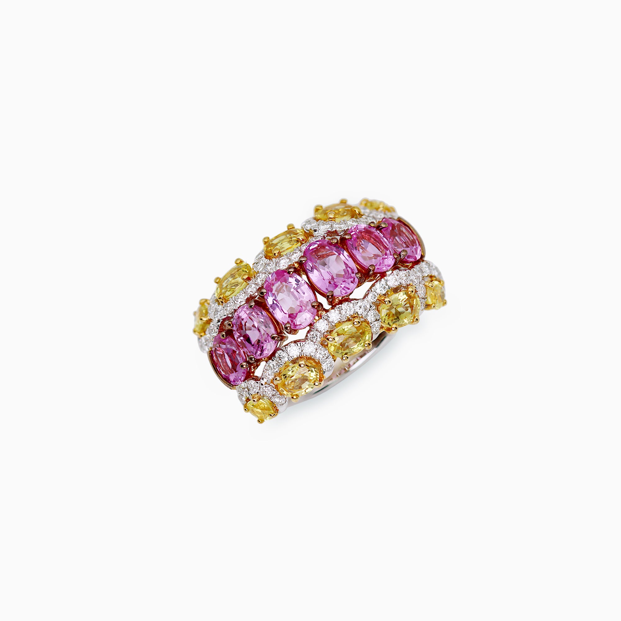 18K White, Rose & Yellow Gold Sapphire & Diamond Ring